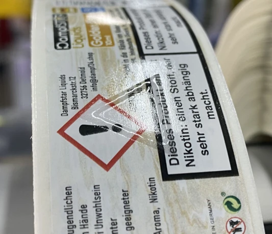 - Etiketter med selektivt avlastande lack - etiketter med varningstriangel
