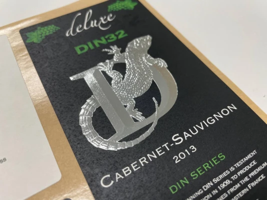 - Tryckta etiketter förgyllda/silverpläterade genom varmstansning