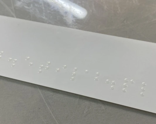 Etiketter med punktskrift används ofta inom apoteks- och kosmetologisektorn. Det blir också alltmer populärt för livsmedelsetiketter och elektronik. Märkningen kräver en otrolig precision för att blinda och synskadade inte ska få problem med en effektiv produktidentifiering.